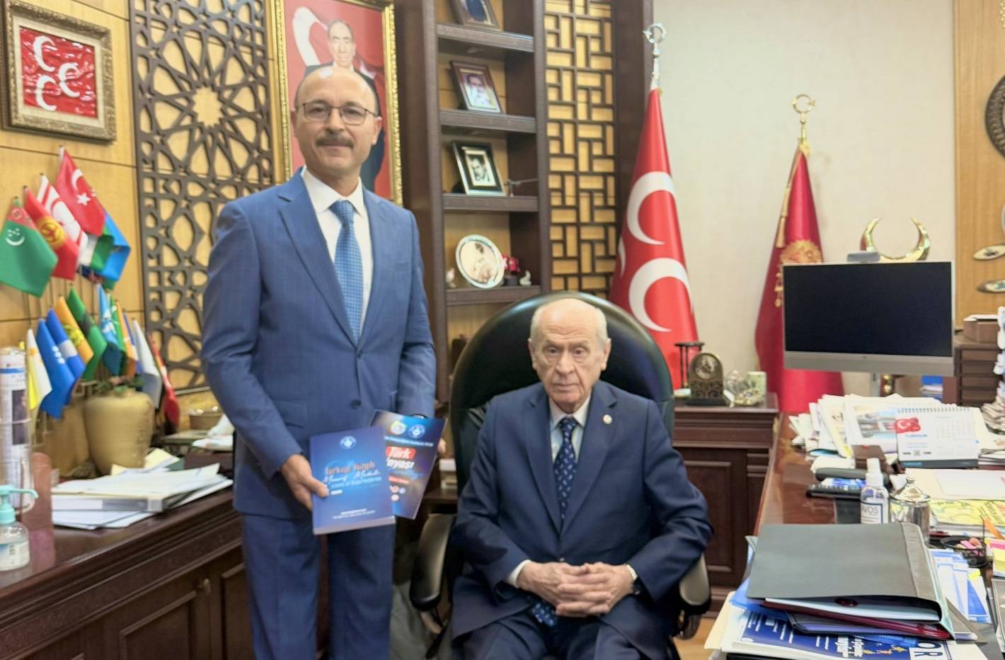 Geylan’ın X paylaşımı, “MHP Genel Başkanı Sayın Devlet Bahçeli’yi ziyaret ederek çalışmalarımız ve eğitimin gündemine dair bilgiler arz ettim. Geride bıraktığımız eğitim öğretim yılında uygulamaya konulan Türkiye Yüzyılı Maarif Modeli’ne dair Türk Eğitim Sen olarak düzenlemiş olduğumuz ‘İzleme ve Değerlendirme Çalıştayı’ raporunu kendisine sundum. Ayrıca Uluslararası Avrasya Eğitim Sendikaları Birliği ve Türk Eğitim Sen işbirliğiyle Eylül ayında düzenlenecek olan TÜRK DÜNYASI EĞİTİM KURULTAYI programını da Sayın Genel Başkanıma ileterek programımıza davet ettim. Eğitimin ve eğitim çalışanlarının meselelerine dair her zaman yakın alaka gösteren Sayın Genel Başkanıma kabulünden ötürü çok teşekkür ediyorum2 (BSHA – Bilim ve Sağlık Haber Ajansı)