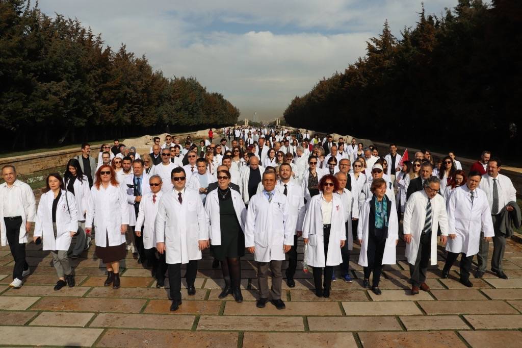 Tıp bayramı hekim ve sağlık çalışanlarını hak kayıpları, artan sağlıkta şiddet vakalarının gölgesinde kutlanıyor. TTB Merkez Konseyi Başkanı Dr. Alpay Azap, II. Başkanı Dr. Pınar Saip, Genel Sekreteri Dr. Önder Okay, Merkez Konseyi üyeleri Dr. Nilüfer Ustael, Dr. Murat Erkan, Dr. Güzide Elitez ve Dr. Ali Osman Karababa’nın da yer aldığı heyet Aslanlı Yol’dan yürüyerek tören alanına geçti ve Mustafa Kemal Atatürk’ün naaşının bulunduğu mozoleye çelenk bıraktı. Burada yapılan saygı duruşunun ardından Misak-ı Milli Kulesi’ne geçildi. TTB Merkez Konseyi Başkanı Dr. Alpay Azap, Anıtkabir Özel Defterini imzaladı.